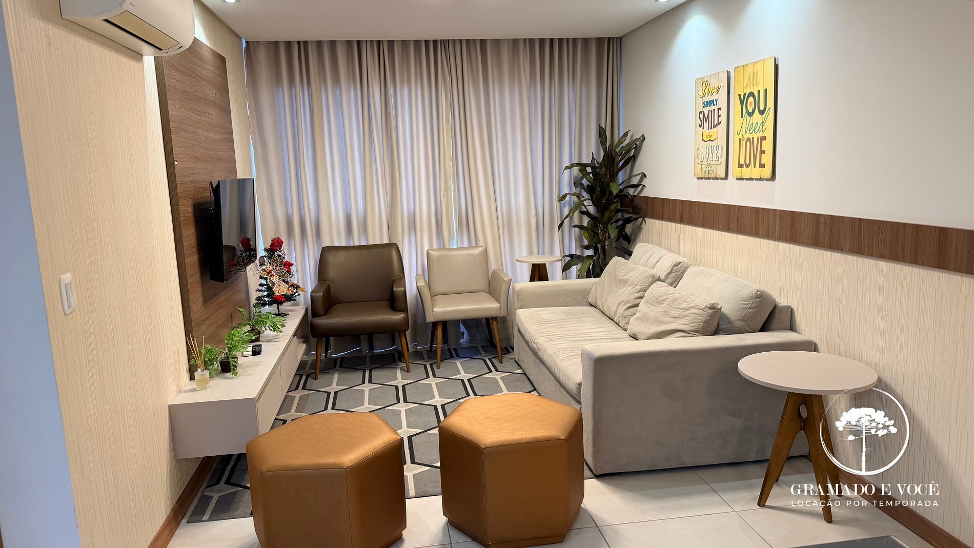 Apartamento recién decorado con 2 habitaciones, 2 baños, cocina con parrilla, sala con sofá cama, Wi-Fi, aire acondicionado y lavadora. Ubicado en el barrio Floresta, a pocos minutos del centro de Gramado y de atracciones como el Lago Joaquina Rita Bier.