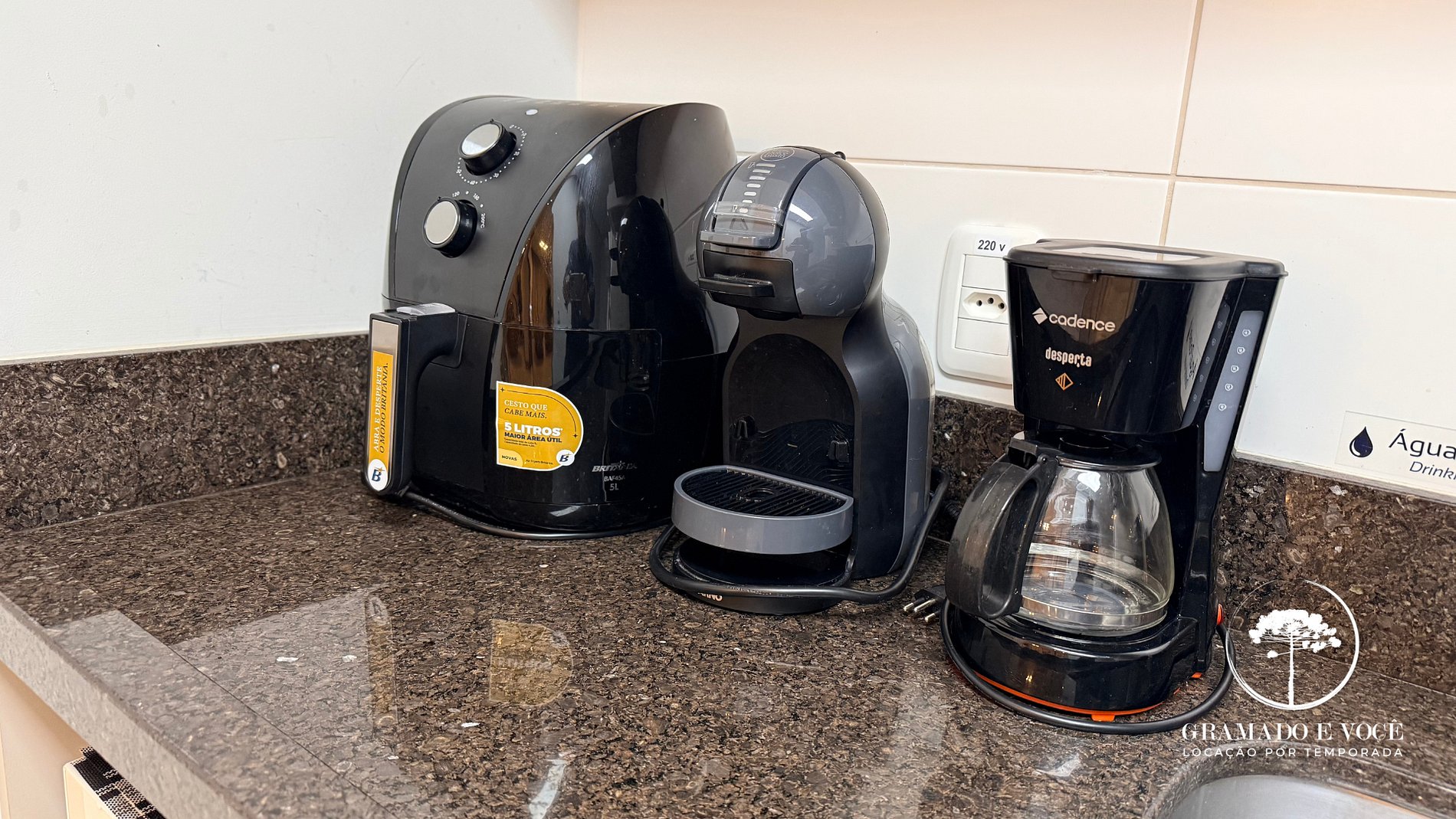 Cocina totalmente equipada con freidora de aire, cafetera, máquina de café, ollas, cubiertos, encimera, cocina, microondas, nevera, extractor, lavadora y varios utensilios, brindando comodidad y practicidad para tu grupo de acompañantes;